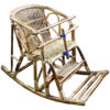 A cane/rattan rocking chair or rocker is a type of chair with two curved bands (also known as rockers) attached to the bottom of the legs, connecting the legs on each side to each other. The rockers contact the floor at only two points, giving the occupant the ability to rock back and forth by shifting their weight or pushing lightly with their feet. Rocking chairs are most commonly made of rattan.
