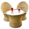 - Consists of woven single table and two woven single seater chairs.